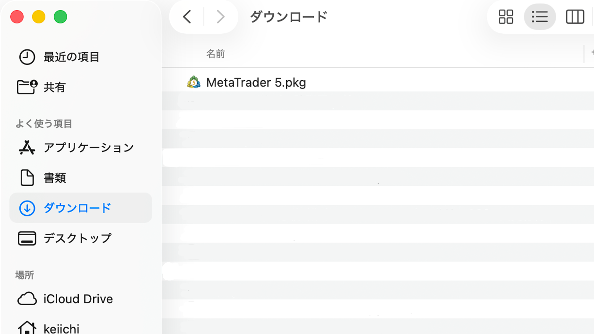 「MetaTrader 5.pkg」は、ダウンロードの項目にあります。