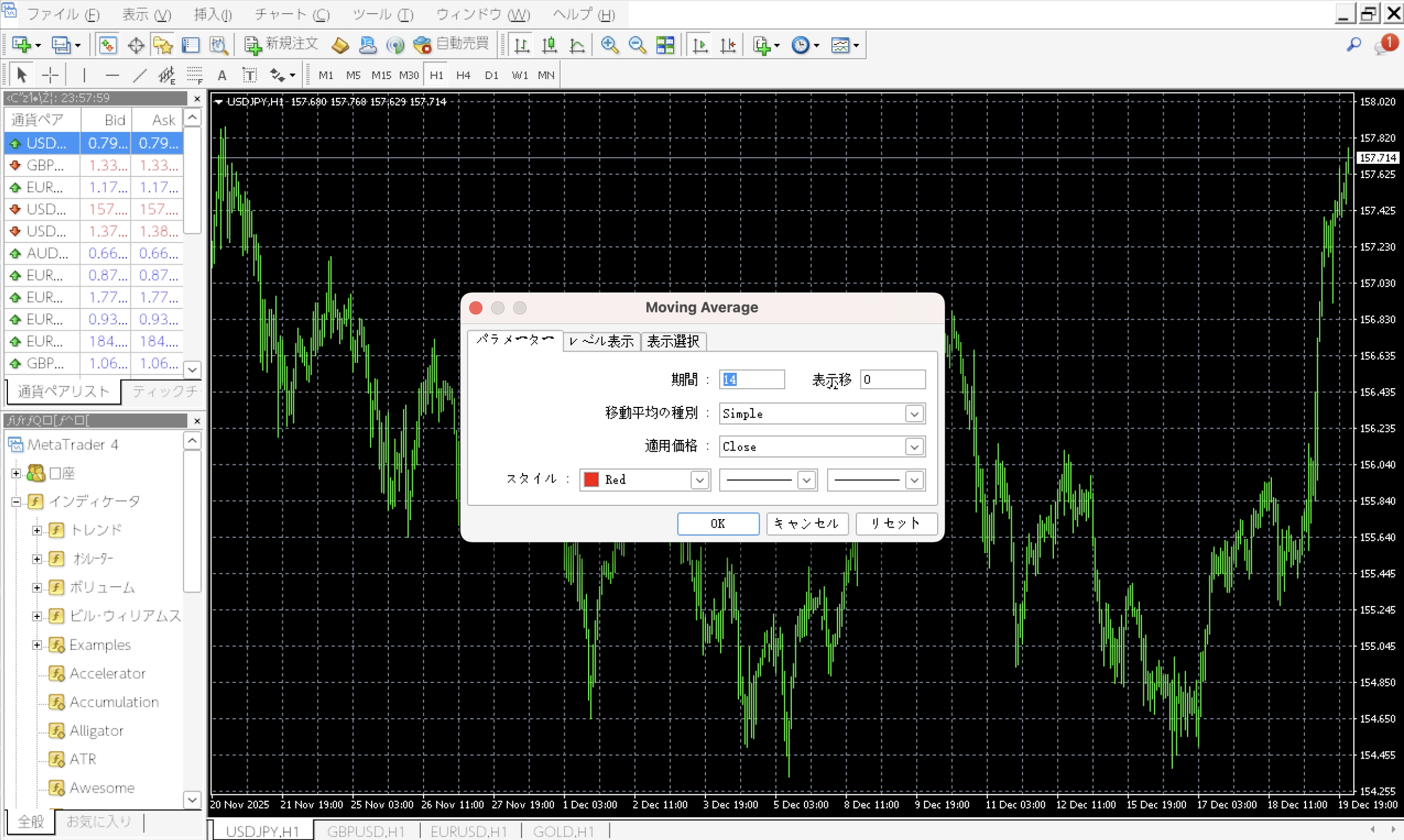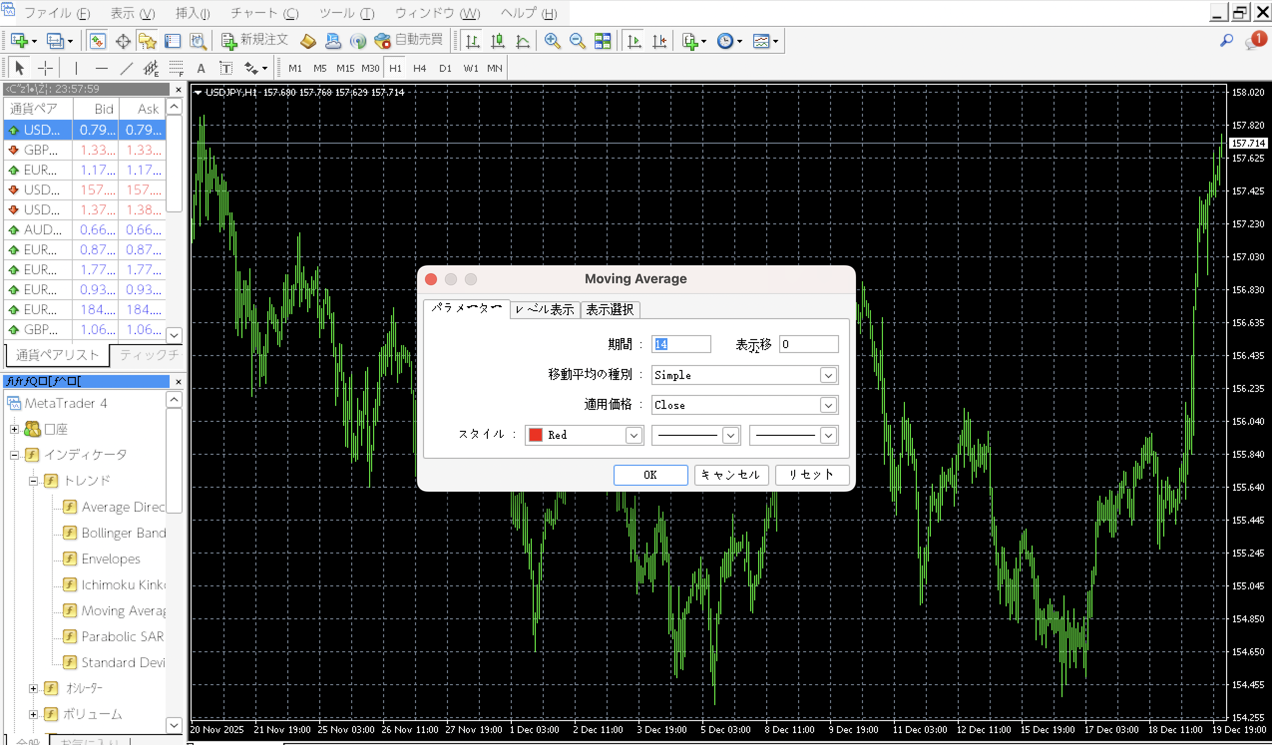 ここでは、「Moving Average(移動平均線)」を追加します。