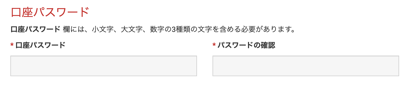 | 口座パスワード | 例:Kaigaifxhiroba001 |