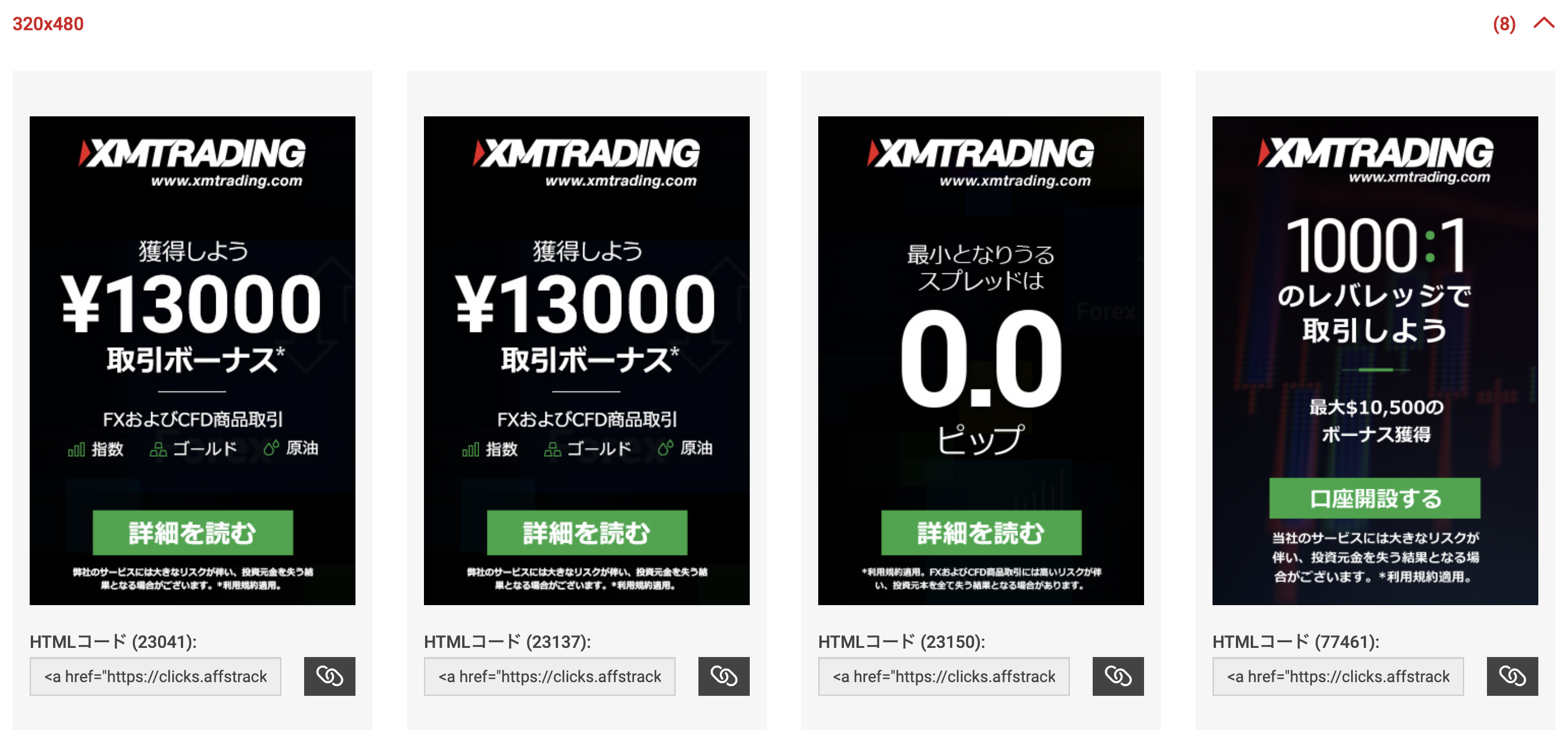 アフィリエイトリンクをクリックすると、「ホームページ」や「リアル口座を開設する」など様々なリンクが掲載されています。そのリンクをコピーして自身のウェブサイトに貼りつけます。
