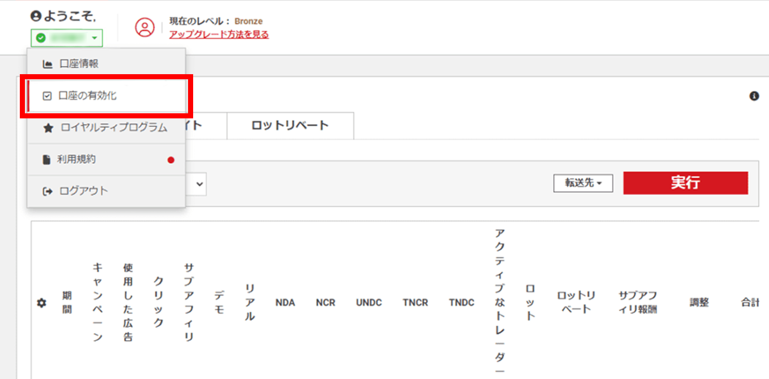 パートナー口座は、通常のトレードを行う口座とは別の口座です。