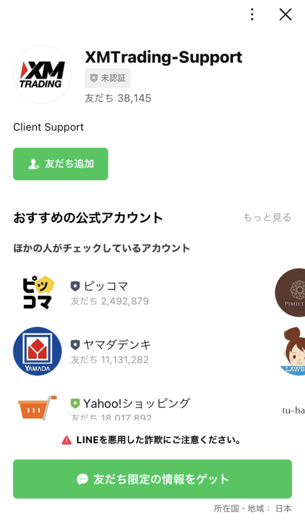 携帯でXMのLINE連絡先を追加すると、サイトページを通じなくてもサポート担当者に連絡を取ることができます。