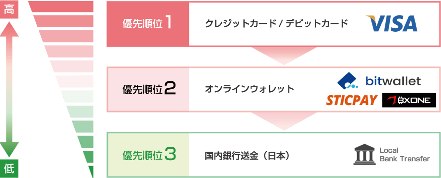 出金方法の優先順位(出金の際、カードへの出金が最優先)